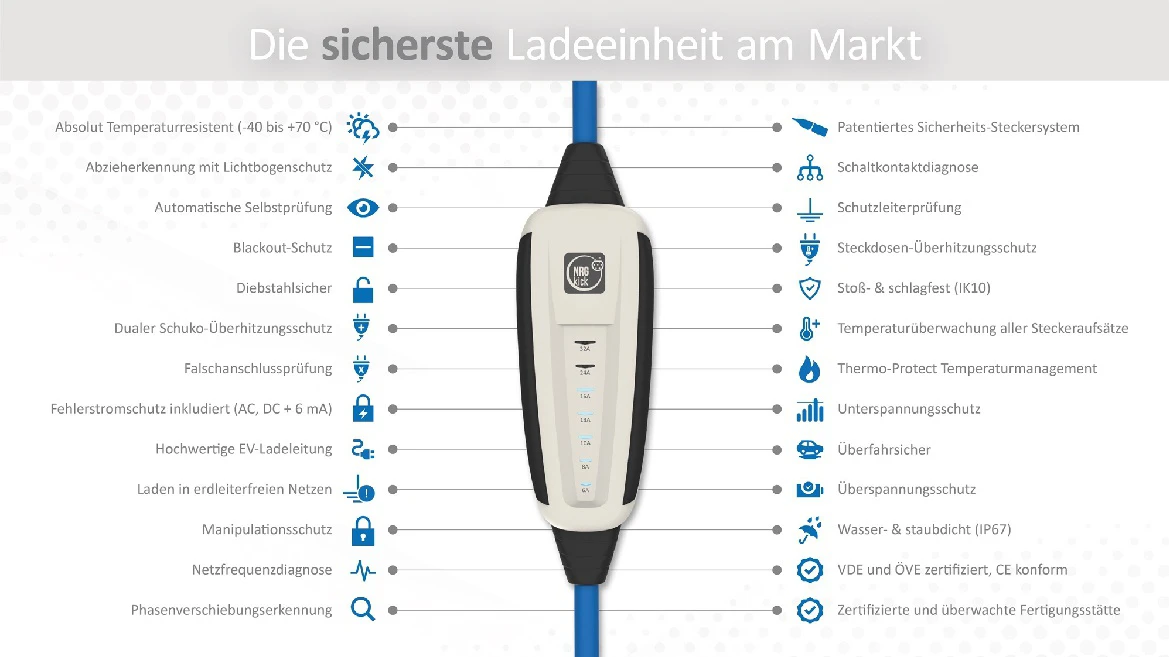 - Weitere Funktionen (z. B. OCPP, photovoltaik-geführtes Laden) über die NRGkick App upgradebar